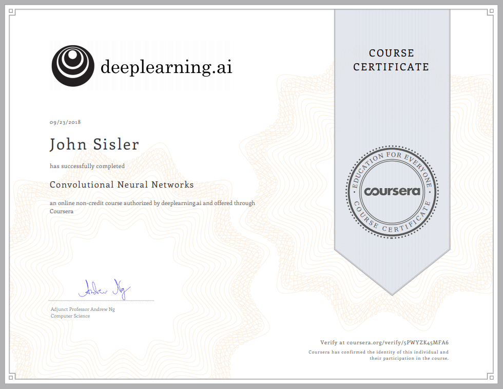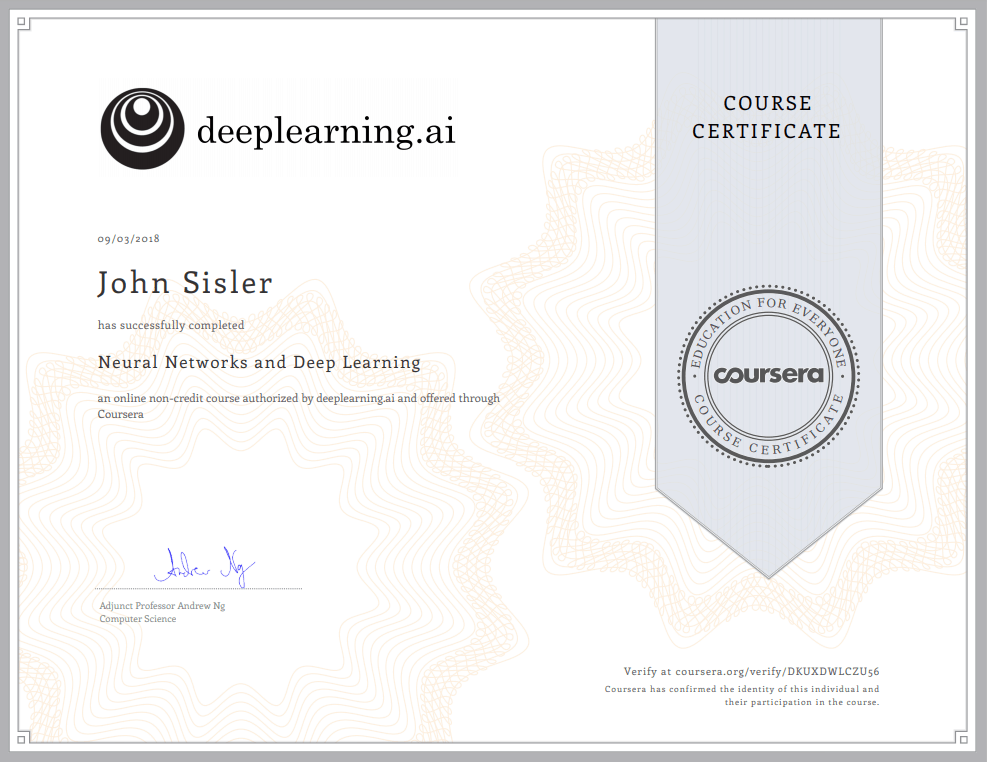 In five courses, the program teaches the foundations of Deep Learning, understand how to build neural networks, and learn how to lead successful machine learning projects. This includes Convolutional networks, RNNs, LSTM, Adam, Dropout, BatchNorm, Xavier/He initialization, and more. Working on case studies from healthcare, autonomous driving, sign language reading, music generation, and natural language processing, onc masters not only the theory, but also sees how it is applied in industry. Ideas are practiced using Python and in TensorFlow, which is taught.